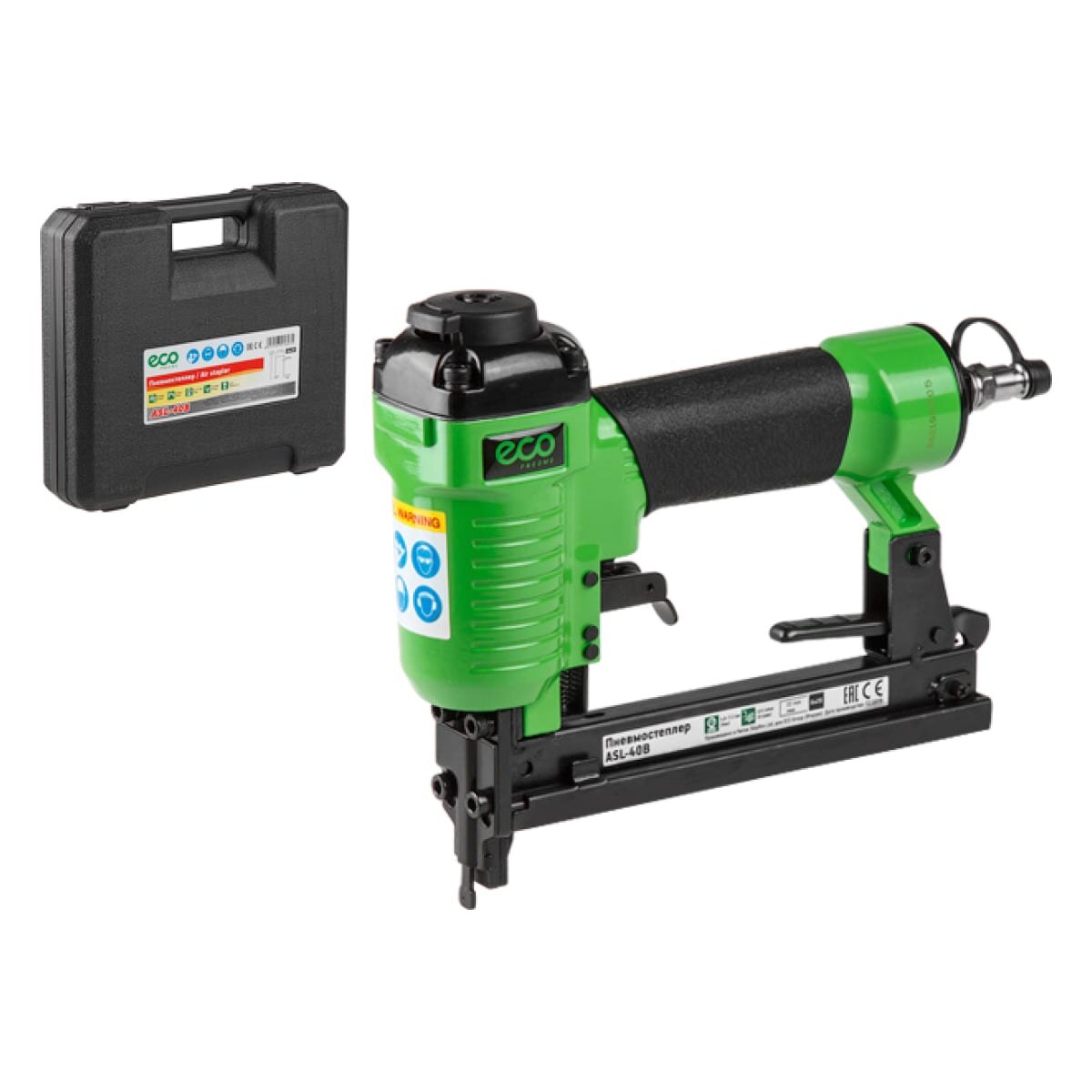 Скобозабивной пневматический пистолет ECO ASL-40B подойдет для работ в домашней мастерской или на мебельном производстве.