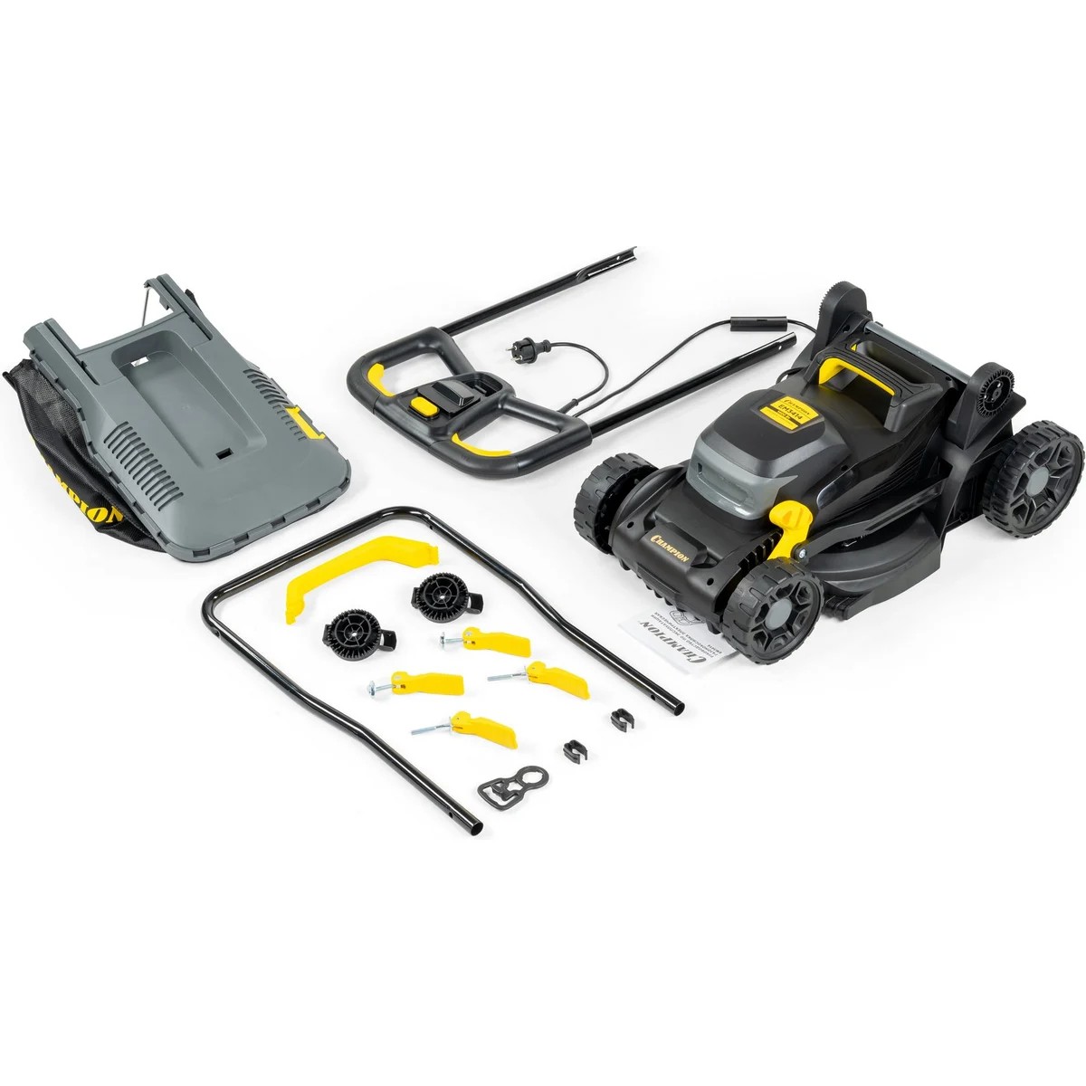 Электрическая газонокосилка CHAMPION EM3414 — легкая и компактная модель с шириной скашивания 34 см и регулировкой высоты от 20 до 70 мм. Мощность двигателя 1400 Вт, объем травосборника 35 литров, вес с травосборником около 13 кг. Отличный выбор для ухода за небольшими газонами с удобным управлением и надежной конструкцией.