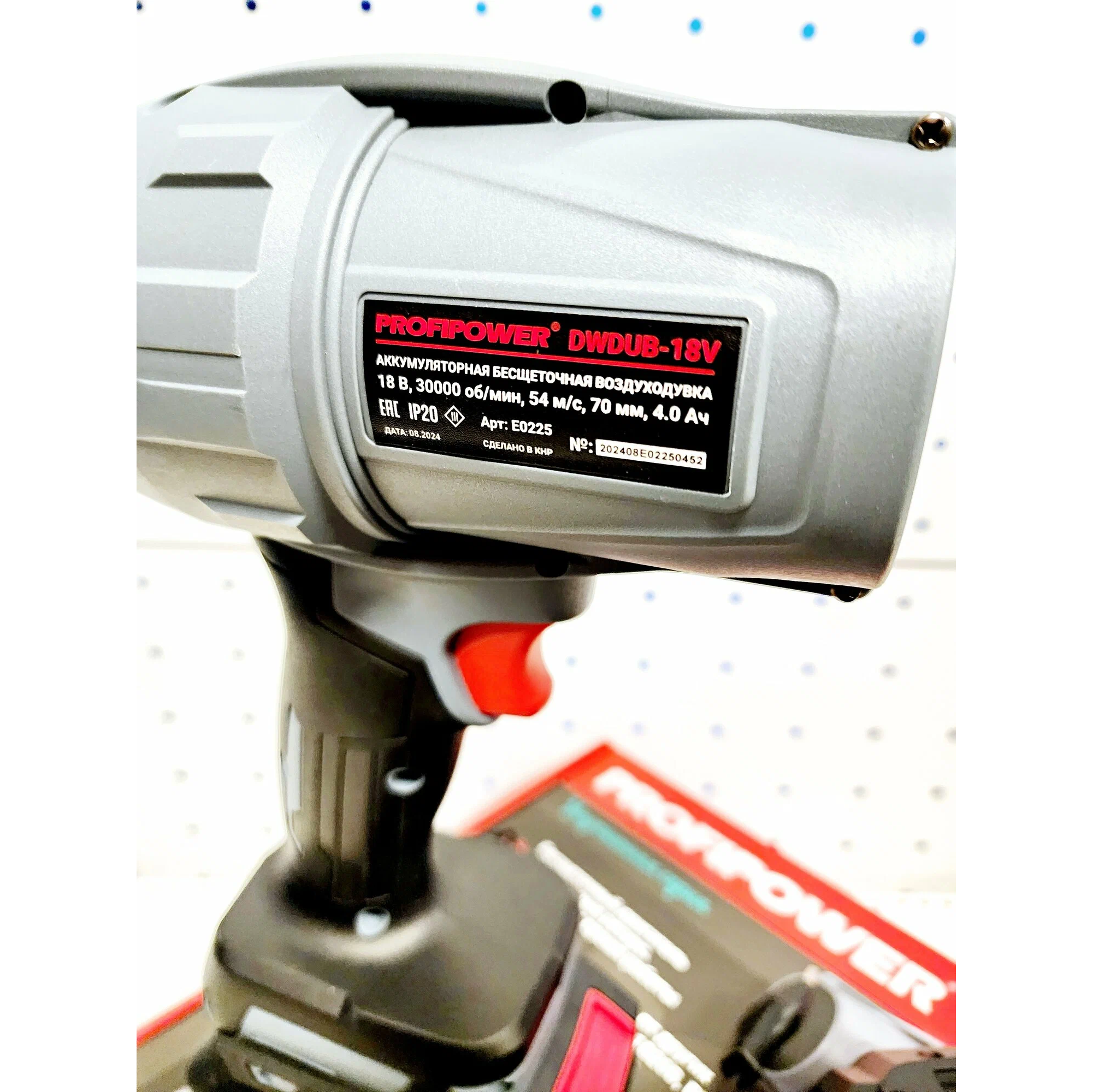 Основные характеристикиБрендPROFIPOWERТипвоздуходувкаТип двигателяаккумуляторныйМаксимальная скорость воздуха54 м/сОсобенностиобдувТип аккумулятораLi-ionЕмкость аккумулятора4 А·чНапряжение аккумулятора18 ВВремя работы от аккумулятора60 мин.Зарядное устройствона 1 аккумуляторКоличество аккумуляторов в комплекте1Способ транспортировкиручнойВес1.8 кгПодробная комплектацияАккумуляторная воздуходувка; аккумулятор 1шт; зарядное устройство; коробка; тех.паспорт