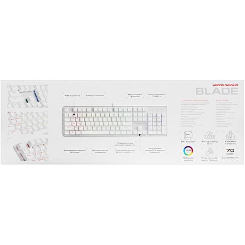 Клавиатура проводная ARDOR GAMING Blade с английской и русской раскладкой оснащена цифровым блоком, незаменимым во время обработки числовых данных. Интегрированная RGB-подсветка добавляет удобства при прохождении игровых сессий в условиях слабого освещения. Синхронизация аксессуара производится с использованием 1.8-метрового USB-кабеля.