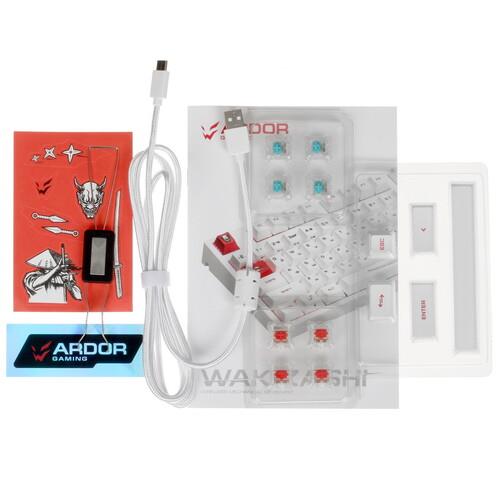 Клавиатура ARDOR GAMING Wakizashi [AG-ZD-87GT-HS-W] выполнена в корпусе белого цвета и дополнена подсветкой с палитрой RGB. Модель с 87 клавишами создана для поклонников компьютерных игр. Клавиатура оснащена механическими переключателями Gateron Mint с укороченным ходом 2 мм, что обеспечивает высокую точность срабатывания в играх. Стабилизаторы обеспечивают легкое и плавное нажатие.