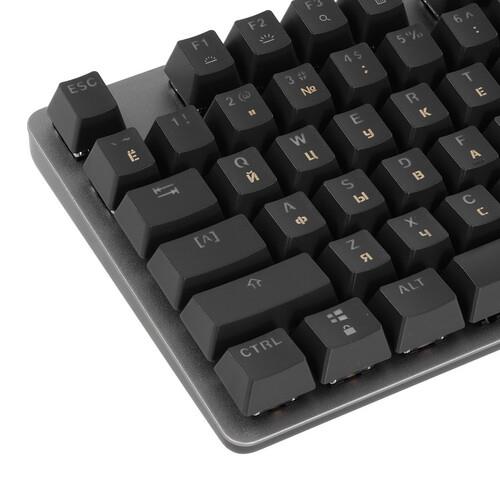 Синхронизировать клавиатуру проводную Logitech K845 [920-009218] помогает 1.8-метровый USB-кабель. Быстрой обработке числовых данных способствует цифровой блок. Аксессуар относится к механическому типу. Его достоинство заключается в высоком ресурсе, рассчитанном на 50 млн нажатий.
