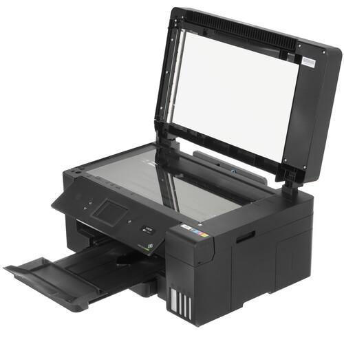 МФУ струйное Epson L14150 выполнено в черном компактном корпусе и представляет собой очень удобное устройство, которое упрощает выполнение офисной работы. Настольный аппарат сочетает в себе копир, принтер, а также факс и сканер. Он поддерживает цветную печать в разрешении 4800x1200 dpi при скорости 9 стр/мин на бумаге формата А4. Показатель скорости при черно-белой печати соответствует 17 стр/мин. Особенность МФУ в поддержке формата А3.