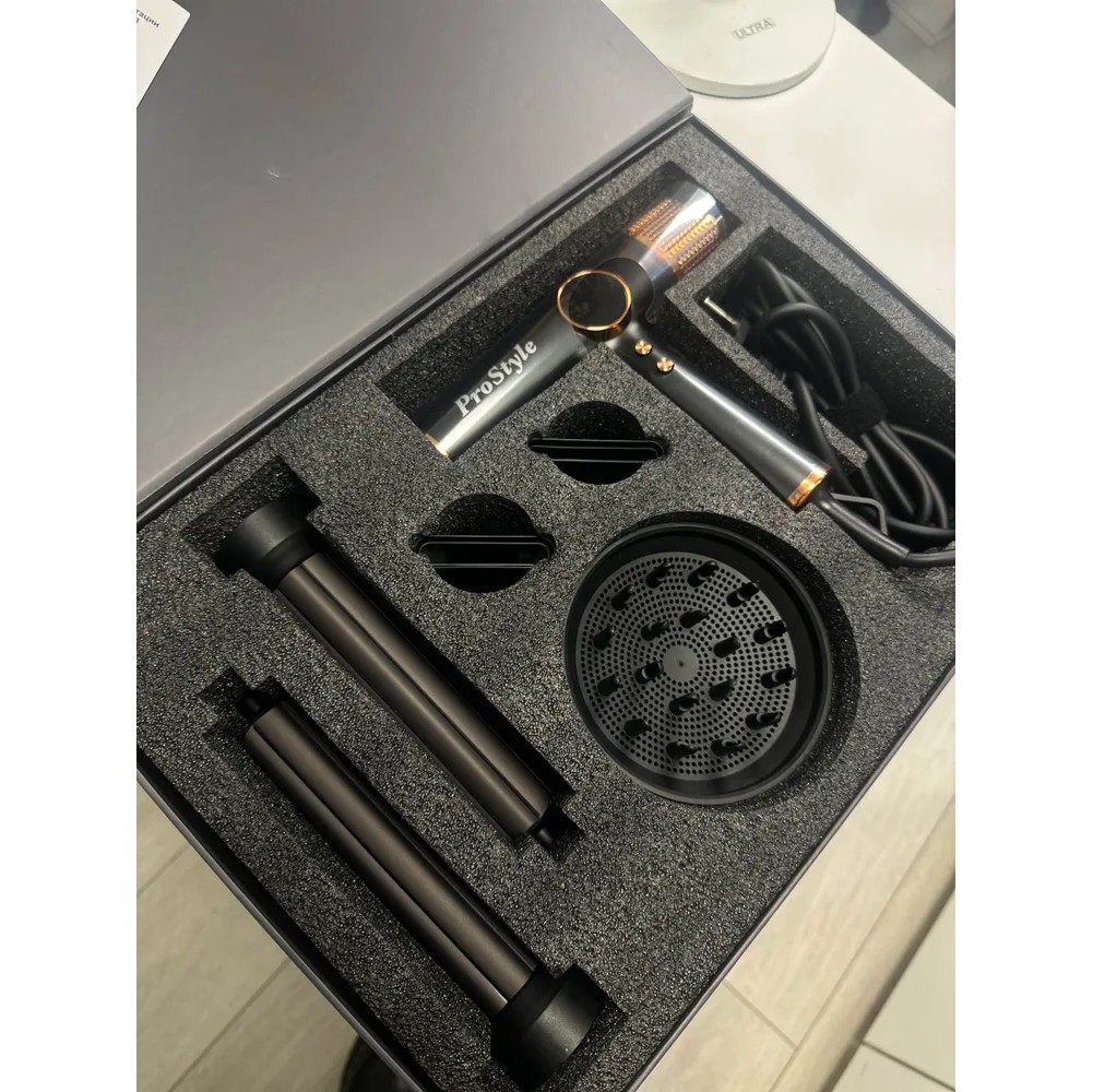 концентратор (2 шт.), диффузор (диаметр — 12 см), плойка (2 шт., диаметр — 3 см)
