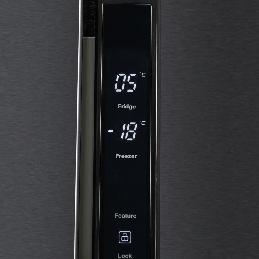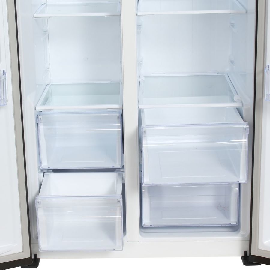 количество камер: двухкамерный; расположение морозильной камеры- сбоку (Side by Side), размораживание морозильной камеры- No Frost, защита от детей, цвет: нержавеющая сталь