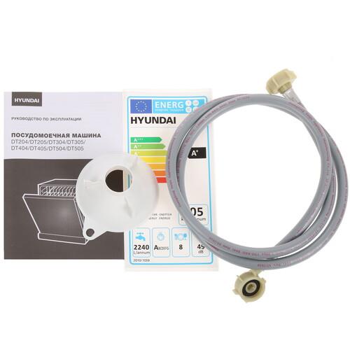 Посудомоечная машина Hyundai DT405 белого цвета рассчитана на одновременную очистку 8 комплектов посуды. Для управления настройками на верхней части корпуса предусмотрена панель с графическими изображениями. Модель изготовлена из высокопрочных материалов, устойчивых к повышенной нагрузке, температуре и механическим повреждениям. Безопасность обеспечивает защита от протечек.