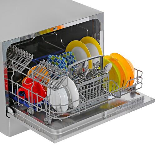 Посудомоечная машина MAUNFELD MLP-06DS на 6 комплектов оснащена 1 корзиной для посуды, лотком для столовых приборов и держателями для бокалов. Модель с частичной защитой от протечек обладает 6 уровнями регулировки жесткости и ионообменником для смягчения воды. Функция Stop & Go позволяет одним касанием ставить машину на паузу, после чего так же легко возобновлять работу.