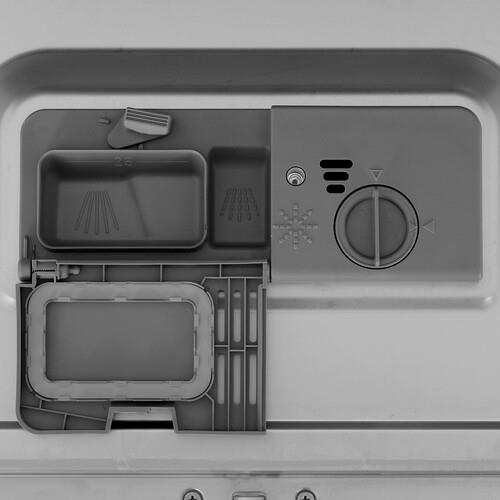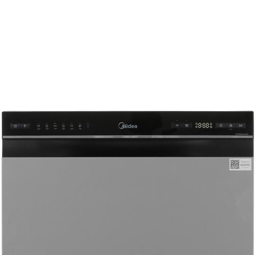 Посудомоечная машина Midea MCFD55S460Si поддерживает управление с помощью приложения SmartHome по Wi-Fi и голосового ассистента Алиса. На панели управления расположены кнопки и дисплей. Функция блокировки исключает изменение параметров. Таймер отложенного запуска до 24 часов предоставляет возможность программирования определенного времени включения программы.