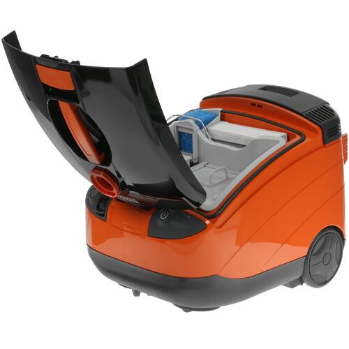 Для большой капитальной уборки у Thomas Twin Tiger есть контейнер с аквафильтром и 4 дополнительных фильтра (пористый, мокрый, фильтр тонкой очистки и микрофильтр на выходе), съемная емкость для собранной воды (4 л), контейнер (2.4 л) для моющего раствора, а также насадки для телескопической всасывающей трубы. Мощность всасывания пылесоса – 300 Вт, мощность потребления равна 1600 Вт.