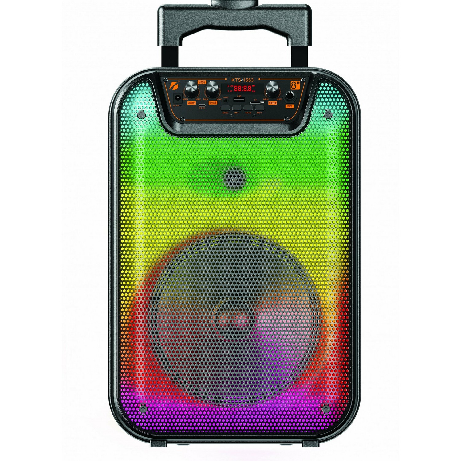USB кабель, AUX кабель, проводной микрофон, пульт, адаптер
