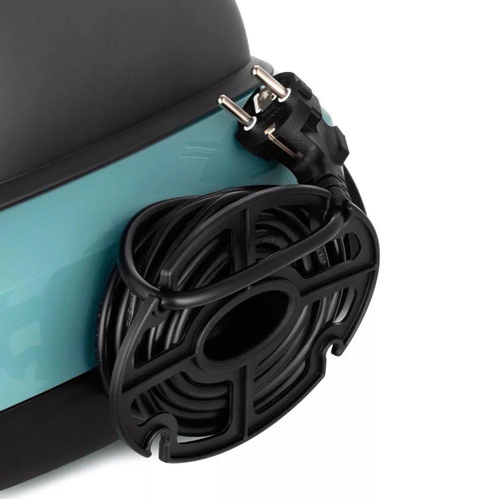 Длина шнура 3,7 м. Излишки шнура питания вы всегда можете намотать на держатель, который подсоединяется к обратной стороне прибора.