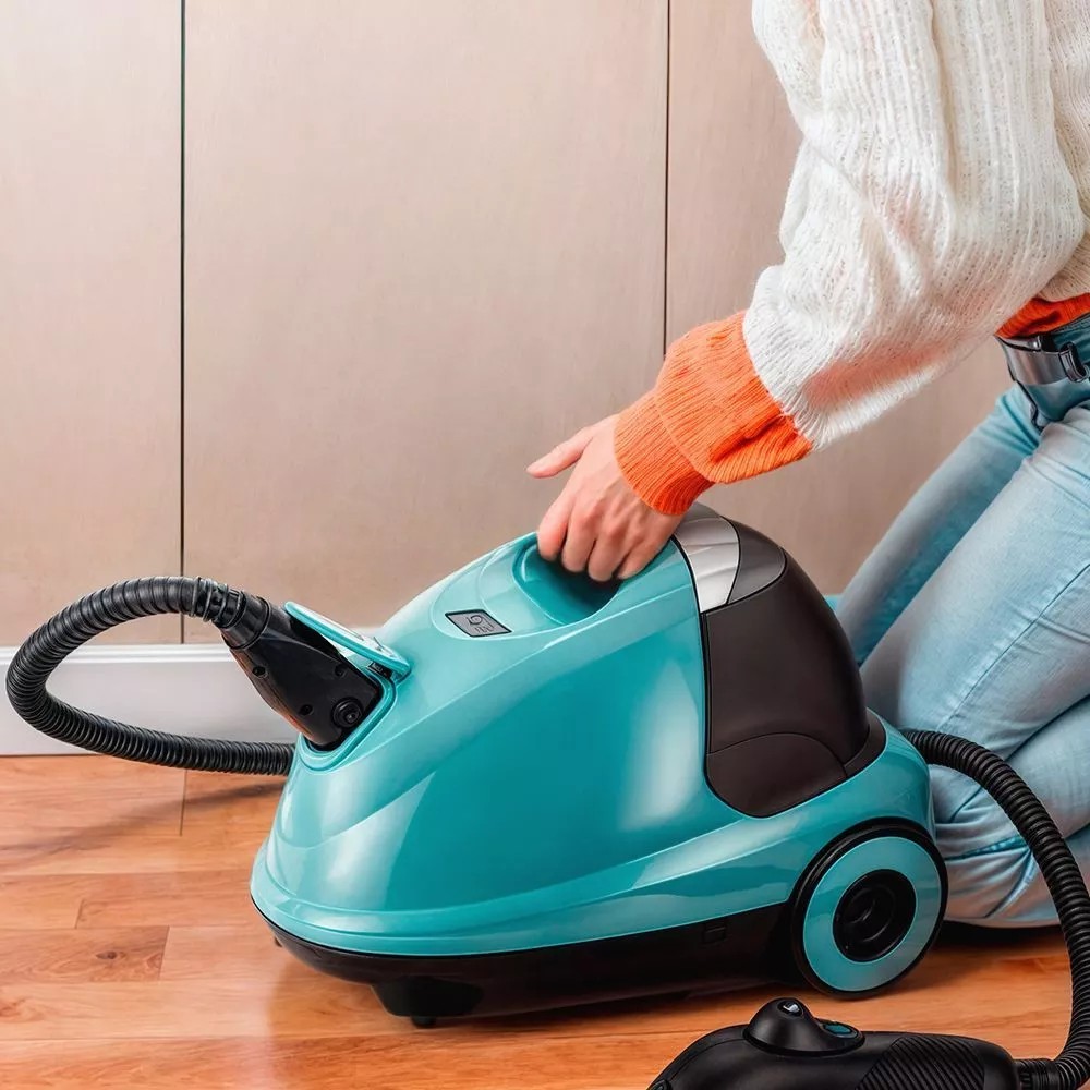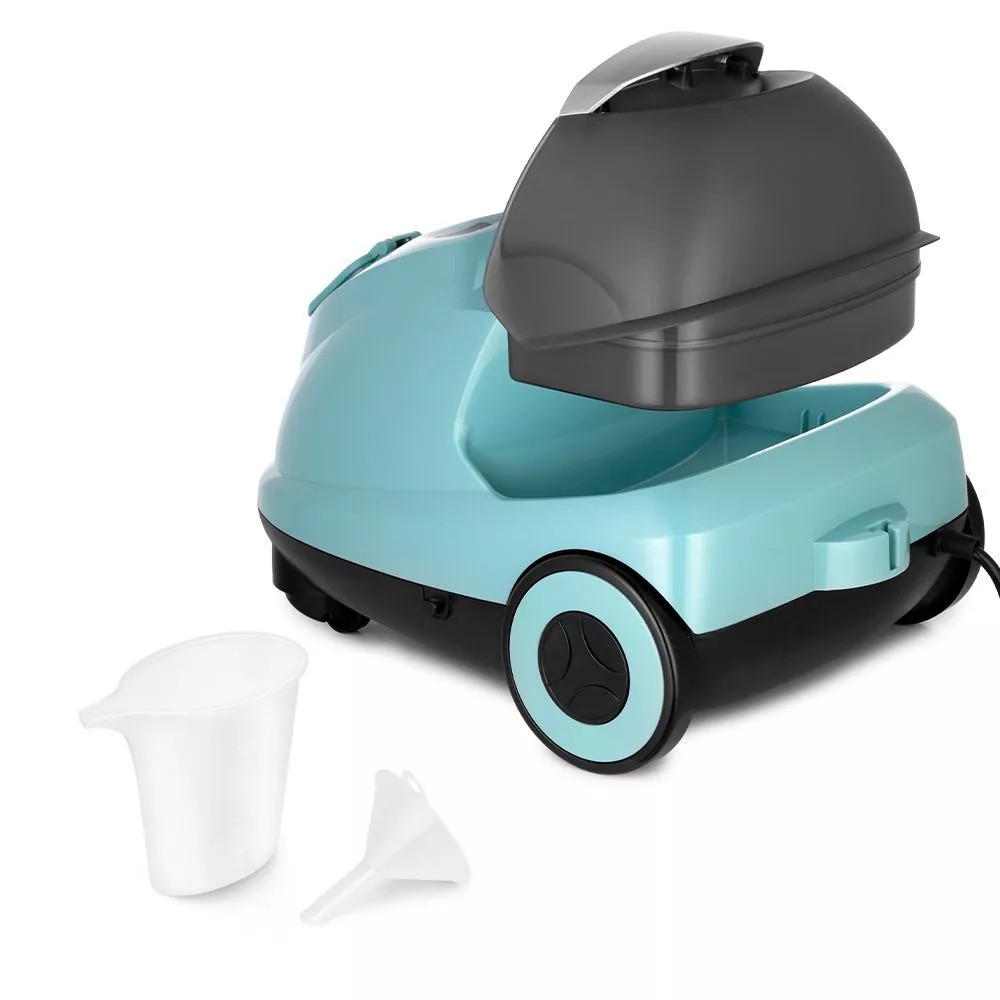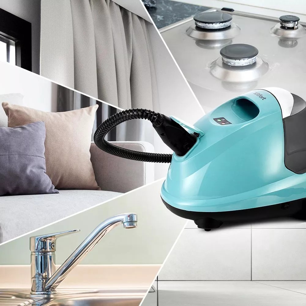 На корпусе пароочистителя есть ручка для переноски. Колёса позволяют с лёгкостью перемещать пароочиститель, не поднимая его. КТ-9187 предназначен для уборки полов и поверхностей, находящихся как внутри, так и вне помещений.