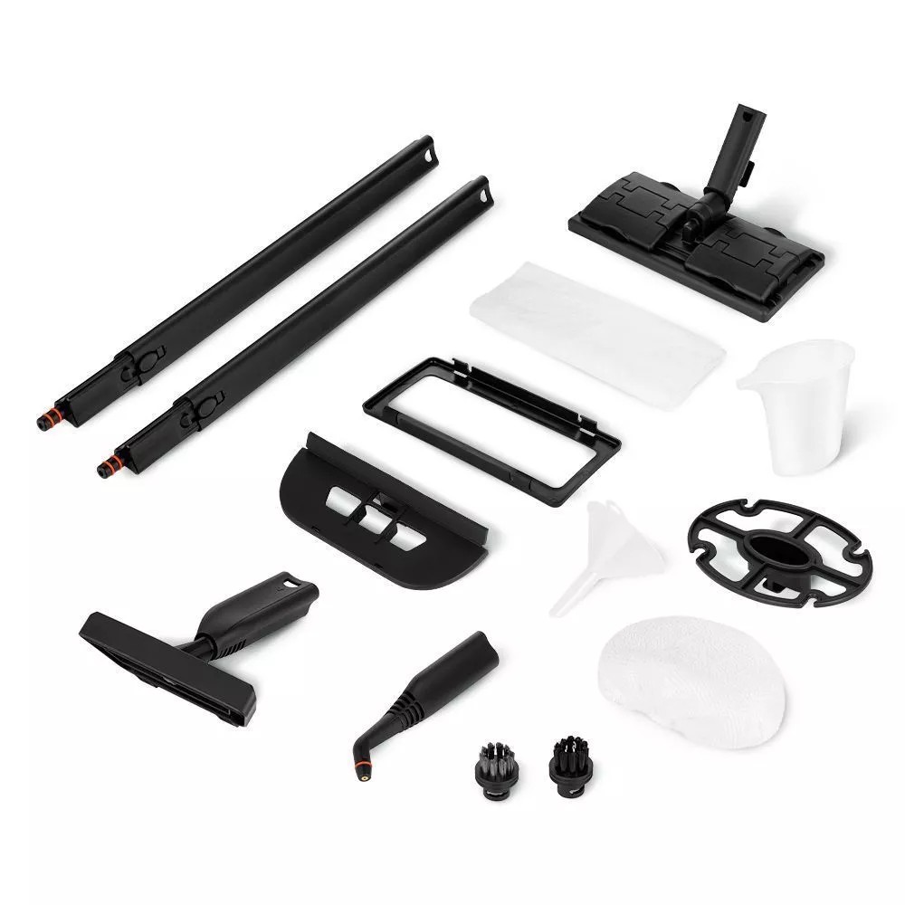 Для эффективной очистки и дезинфекции в комплекте идут 7 насадок и 2 тряпочки. Длина шнура 3,7 м. Большое количество насадок в комплекте поможет очистить труднодоступные или сильнозагрязненные поверхности без использования химии.