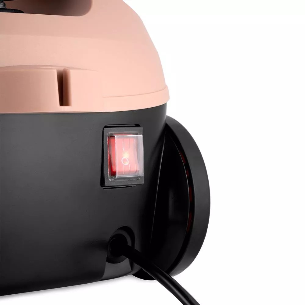 Для эффективной очистки и дезинфекции в комплекте идут 7 насадок и 2 тряпочки. Длина шнура 2,7 м. Излишки шнура питания вы всегда можете намотать на держатель, который подсоединяется к обратной стороне прибора.