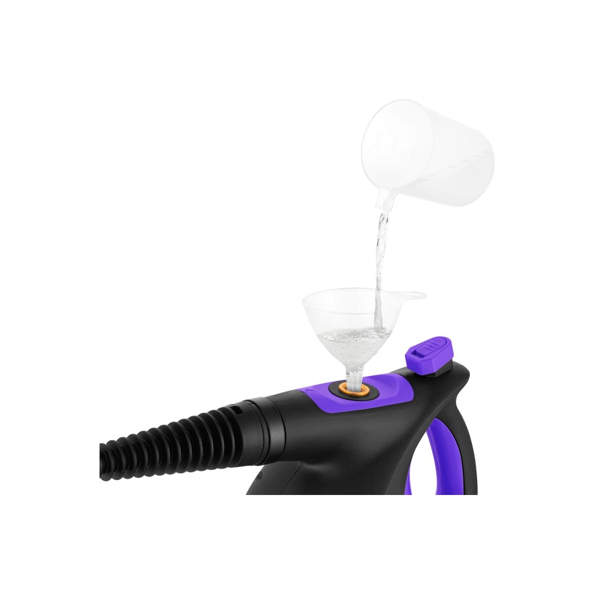 В устройство удобно наливать воду благодаря наличию воронки и мерного стакана.