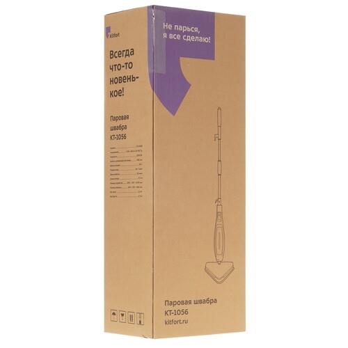 Пароочиститель Kitfort КТ-1056 способен устранять загрязнения и дезинфицировать обрабатываемые поверхности благодаря воздействию горячего пара. Прибор выполнен в виде швабры и оснащен 2 сменными мягкими тряпками для деликатной обработки гладких напольных покрытий. Они фиксируются на насадке при помощи липучек. Для чистки ковровых изделий предусмотрена специальная рамка.