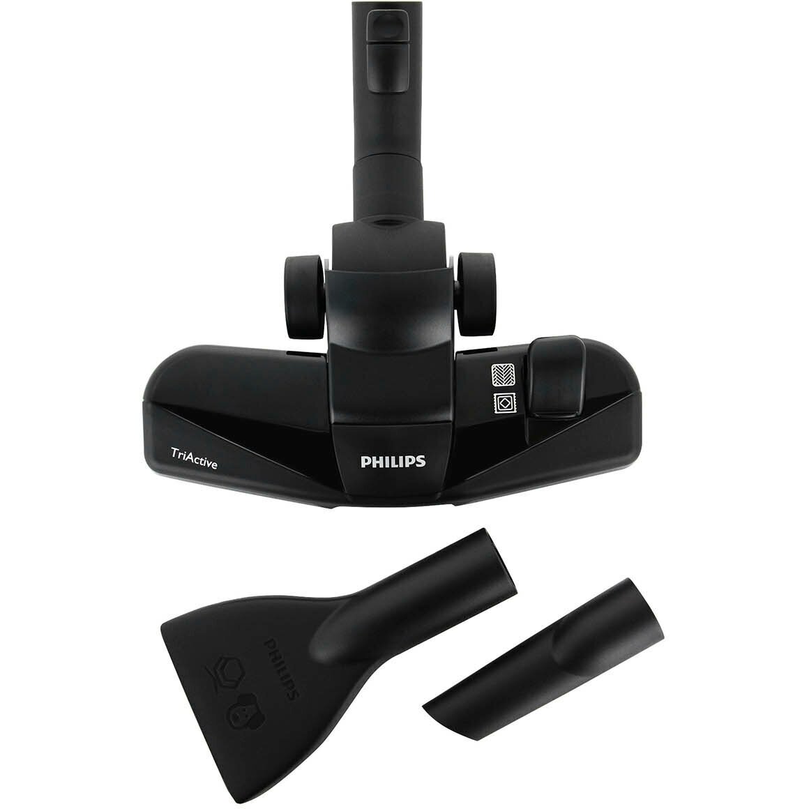 хранение принадлежностей на защелке трубки; удобные ручки для переноски; радиус действия 9 метров; резиновые колеса