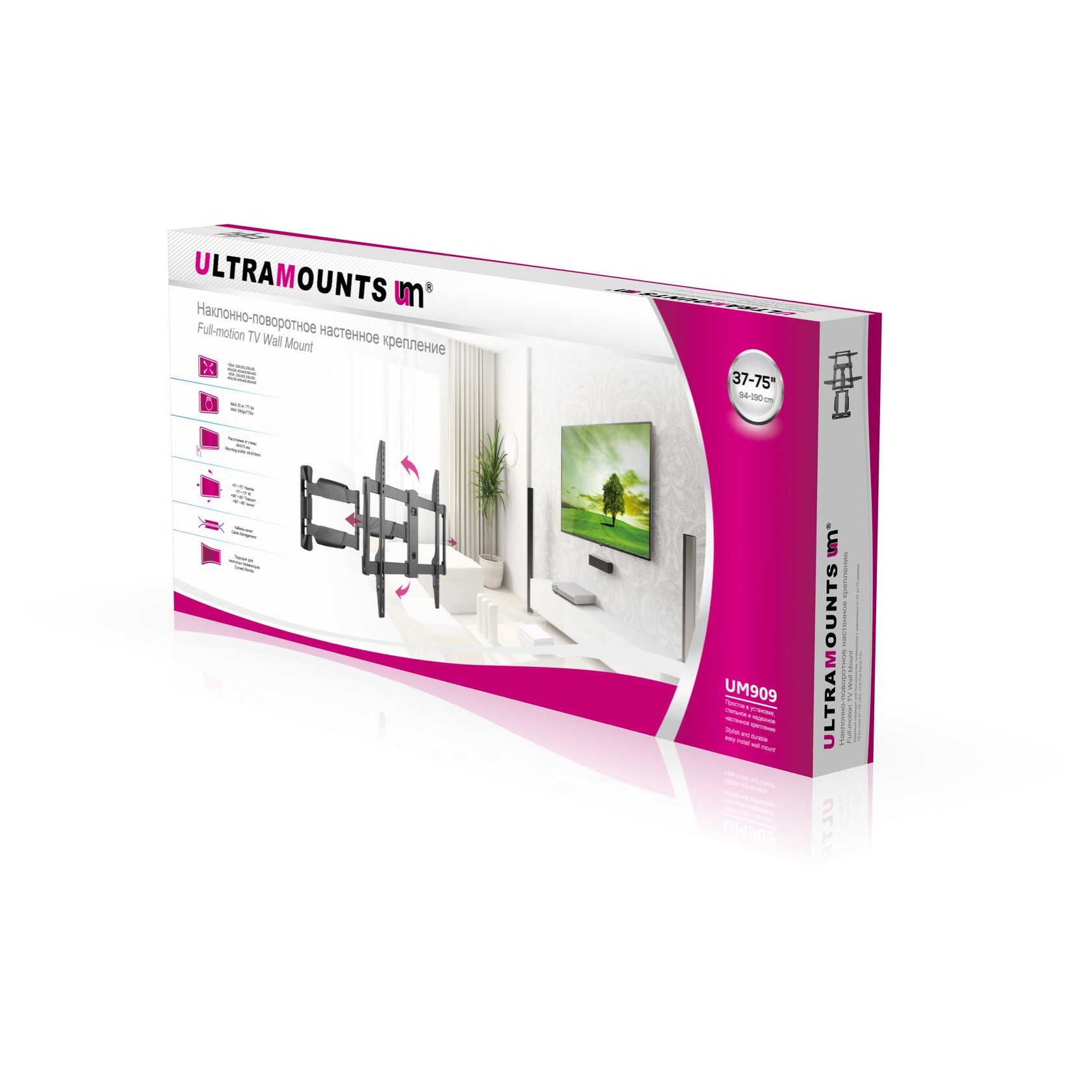Диагональ экрана: 37" - 75"