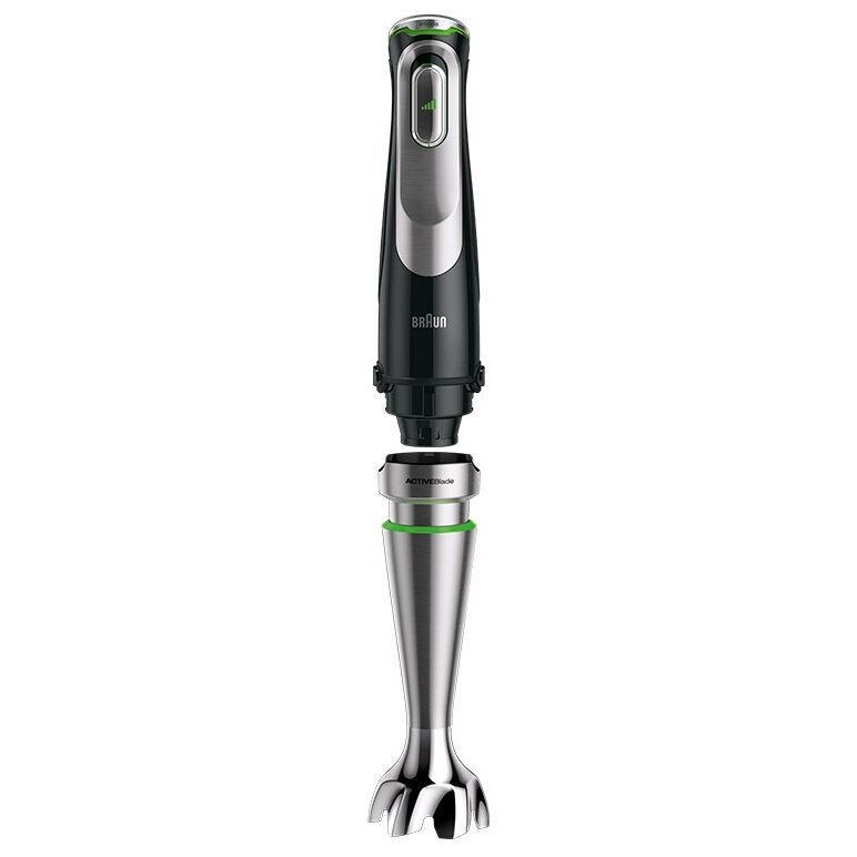 Система EasyClick, управление Smart Speed, технологии ActiveBlade и PowerBell Plus; в комплекте 13 насадок, насадки можно мыть в посудомоечной машине, объем комбайна 2 л, прорезиненная ручка
