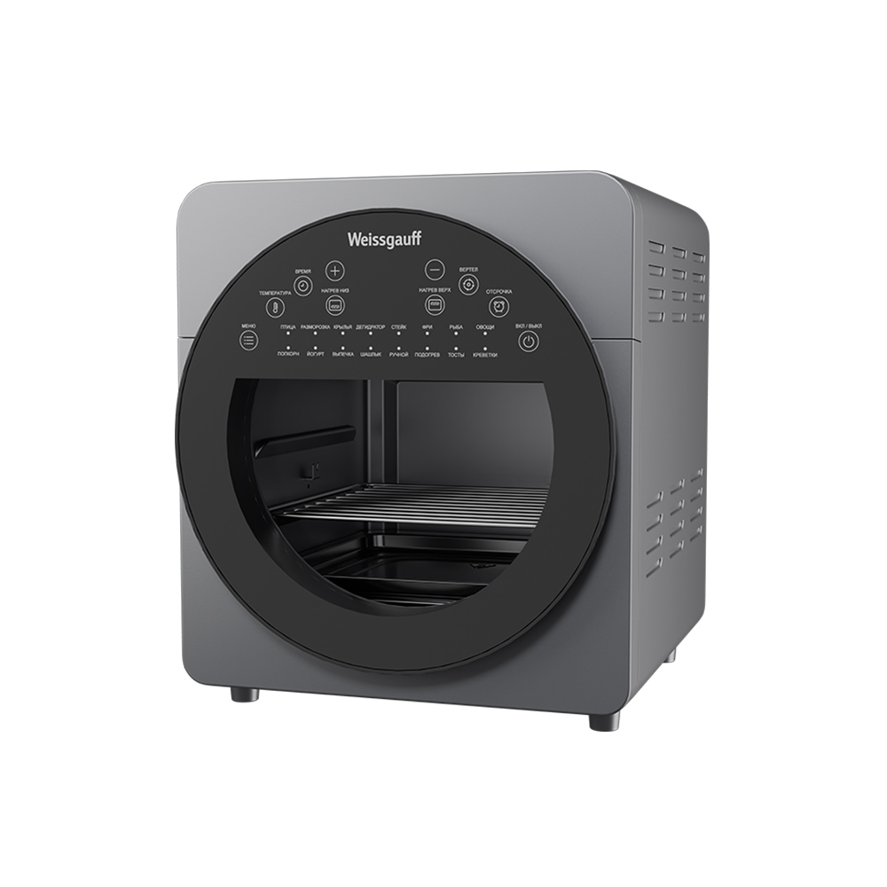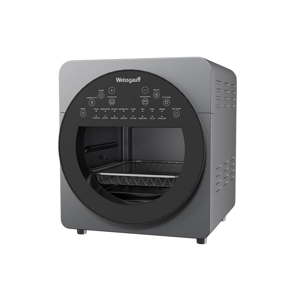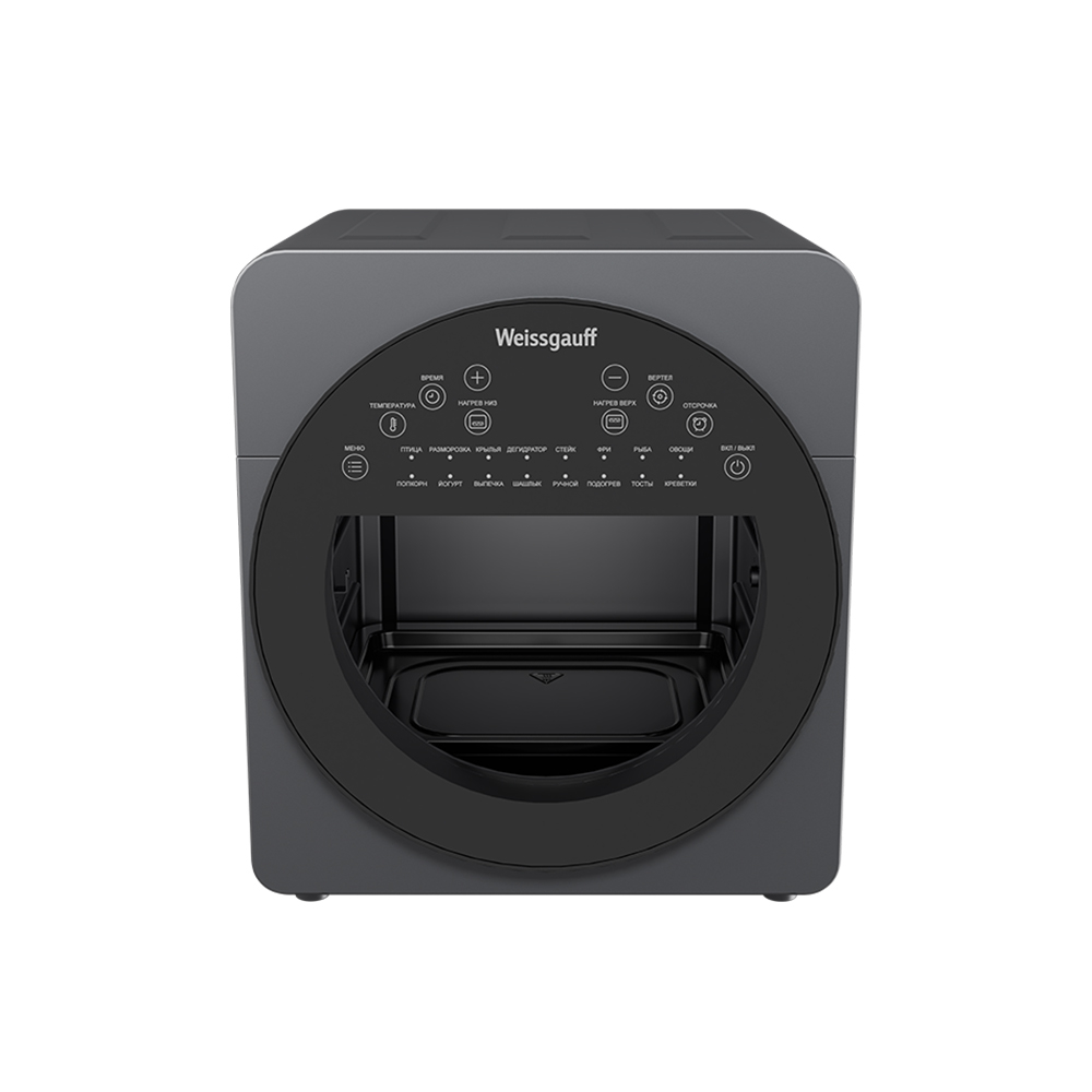 Программы:Птица, Разморозка, Крылья, Дегидратор, Стейк, Фри, Рыба, Овощи, Попкорн, Йогурт, Выпечка, Шашлык, Ручной, Подогрев, Тосты, Креветки
