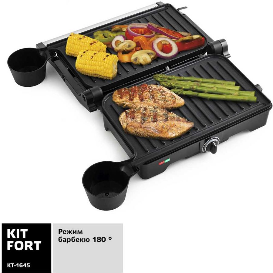 Описание: С помощью электрогриля Kitfort KT-1645 можно приготовить мясо, рыбу, сосиски-гриль, бутерброды, панини, сэндвичи, гренки, тосты и многое другое. Ребристая поверхность и высокая температура панелей способствуют быстрому приготовлению и появлению характерного «полосатого» рисунка на продуктах. Конструкция гриля позволяет готовить в двух режимах. В двухстороннем режиме он закрывается крышкой, и продукты готовятся одновременно с двух сторон. В одностороннем режиме крышка гриля откидывается на 180°, и гриль превращается в большую жаровню. Для приготовления можно использовать обе поверхности.
