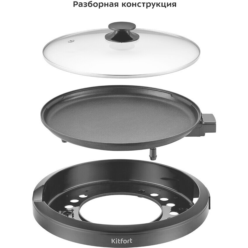 Панель изготовлена из алюминия с нанесённым антипригарным покрытием. Поверхность панели шероховатая для уменьшения прилипания ингредиентов, а также для более лёгкой очистки. Благодаря встроенному нагревателю время нагрева и приготовления сокращается.