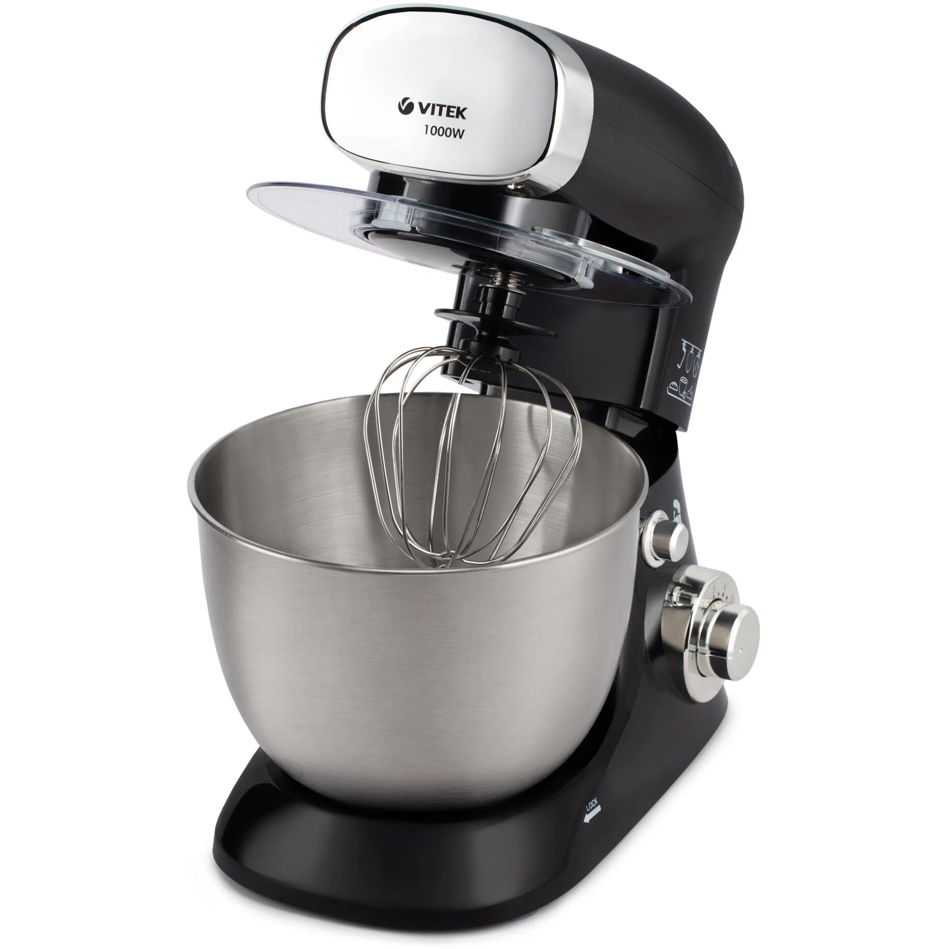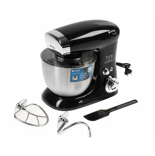 Основные характеристикиБрендVITEKЦвет товарачерныйТиппланетарный стационарныйОсобенности конструкциизащитная крышка на чашу, прорезиненная ручкаМощность1000 ВтЧисло скоростей6Количество насадок3Материал корпусапластикМатериал чашинержавеющая стальОбъем чаши4 лНасадкивенчик для взбивания, насадка для приготовления пюреДлина сетевого шнура1.2 мВес3.9 кгДополнительная информациялопатка в комплекте; насадка для смешивания