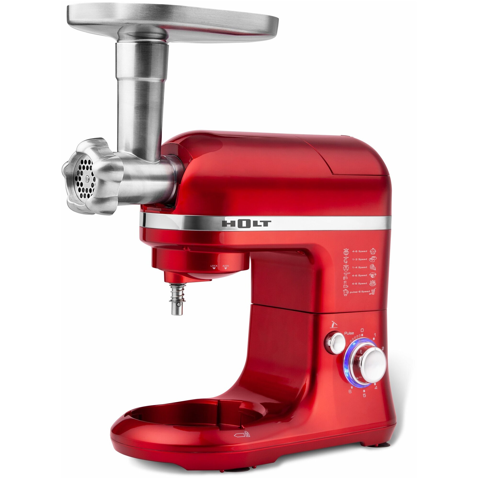Многофункциональный кухонный комбайн 12 в 1 HOLT HT-FP-007, сочетает в себе мощный планетарный миксер, мясорубку с диском для рубленого мяса и насадкой для колбасы, овощерезку с теркой для драников и блендер с чашей из термостойкого стекла. Оснащен новым высокоэффективным ЭКО мотором, потребляющим 850 Вт при максимальной нагрузке и выдающим мощность равную 1250 Вт обычного мотора.