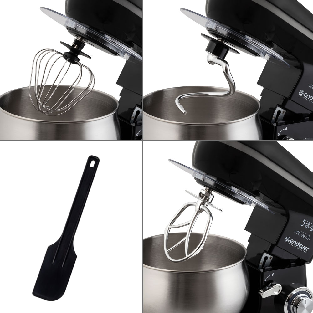 Особенности и дополнительные функции 6 скоростей + импульсный режим, Планетарная система смешивания, Вместительная стальная чаша 5л, LED-индикатор включения, LED-дисплей с возможностью выбора стандартного режима, Плавная регулировка скорости, Прозрачная крышка для чаши, Откидывающаяся верхняя консоль для снятия чаши