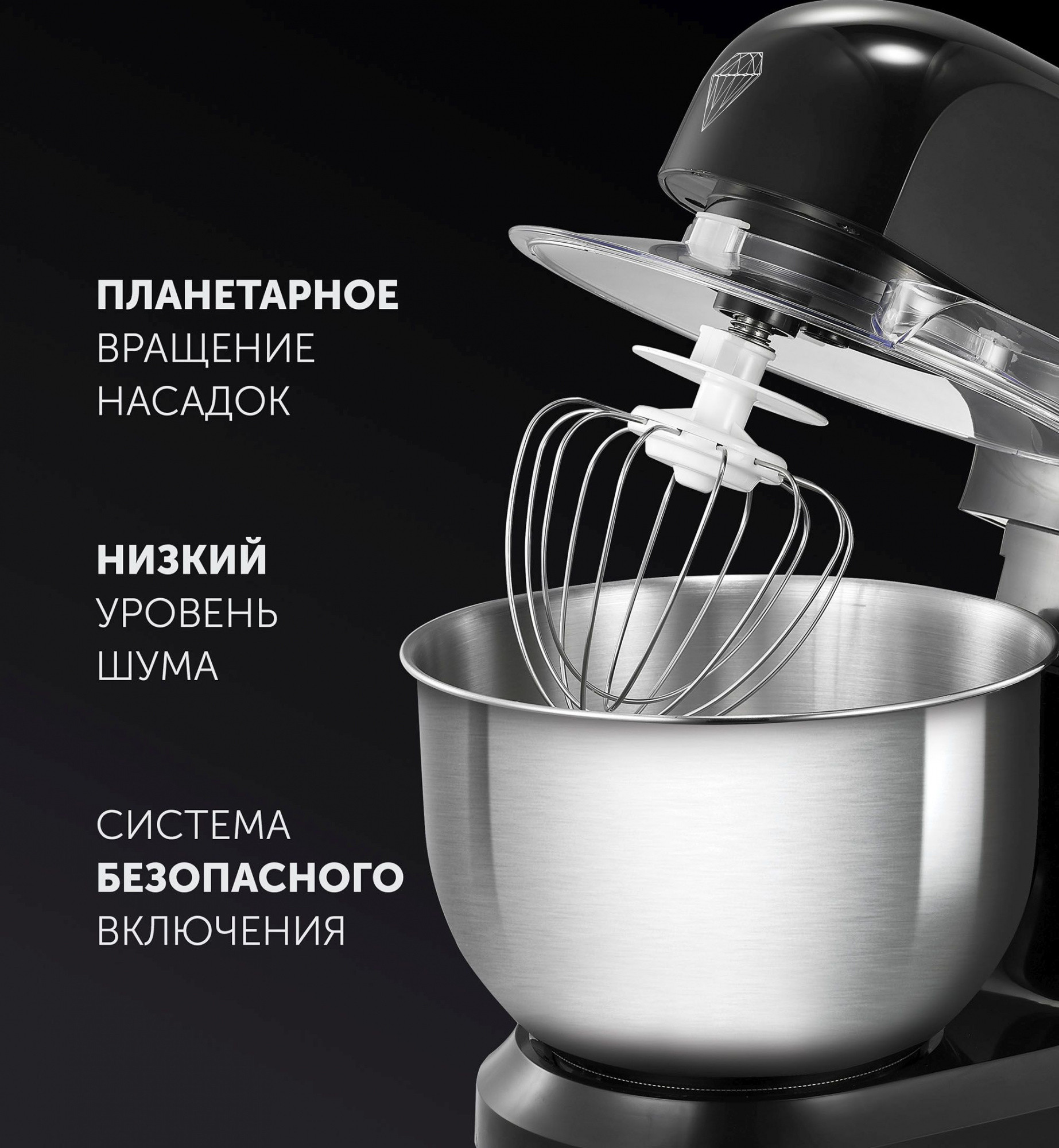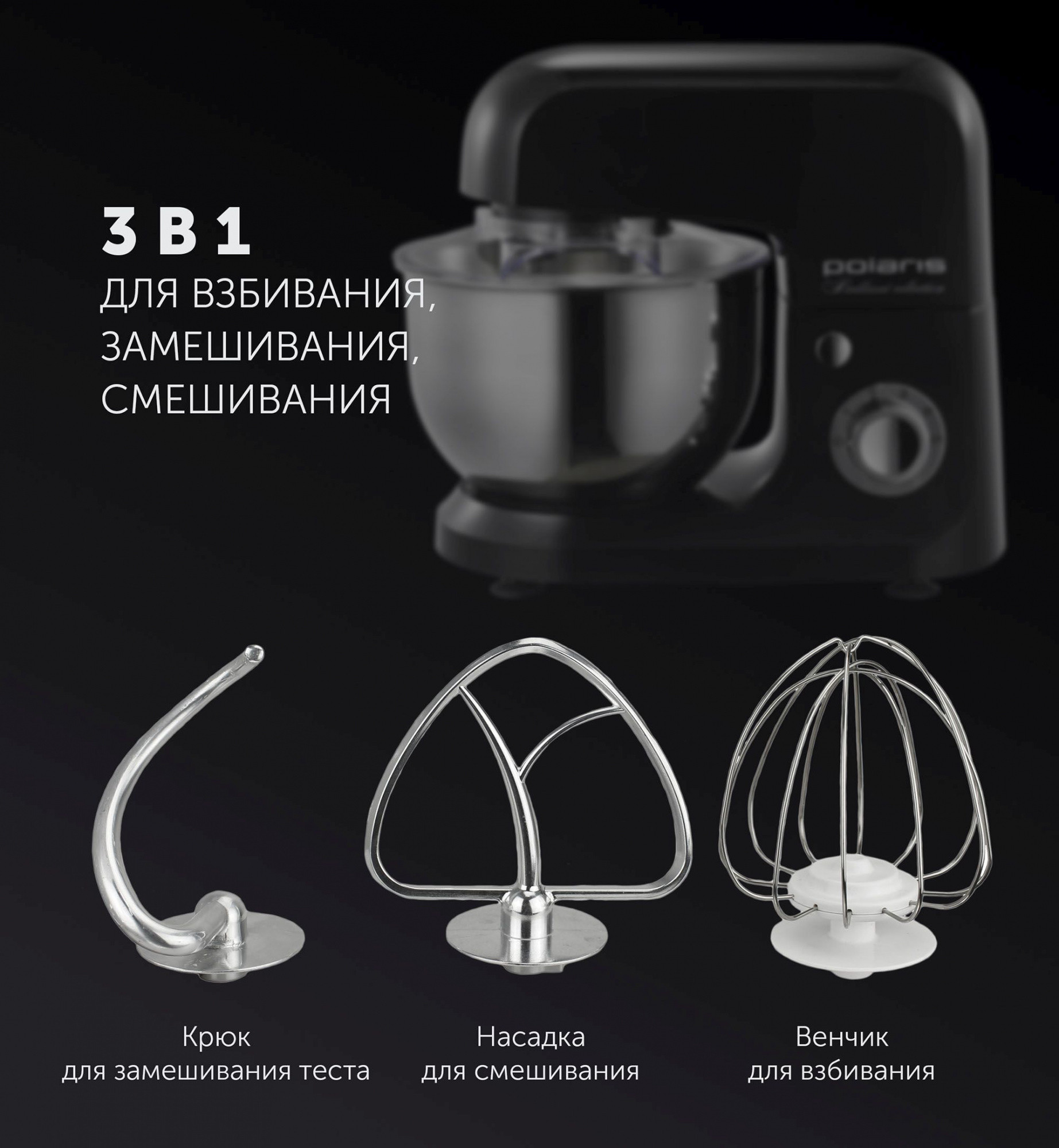 Описание: PROGEAR INSIDE надёжная конструкция со стальной шестернёй. Технология PROtect+ защита двигателя от перегрева. Чаша из нержавеющей стали. 3 в 1: Для Взбивания, Замешивания, Смешивания.