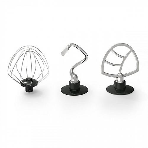 Планетарный миксер, чаша, крышка чаши, металлический венчик для взбивания, крюк для замешивания теста, насадка для смешивания, руководство по эксплуатации, гарантийный талон