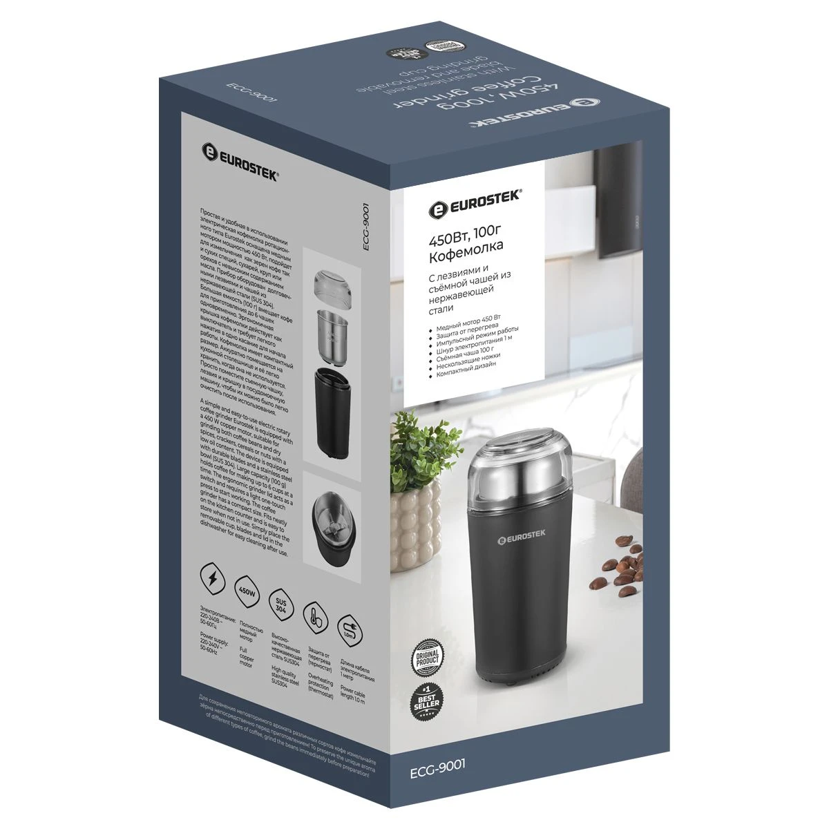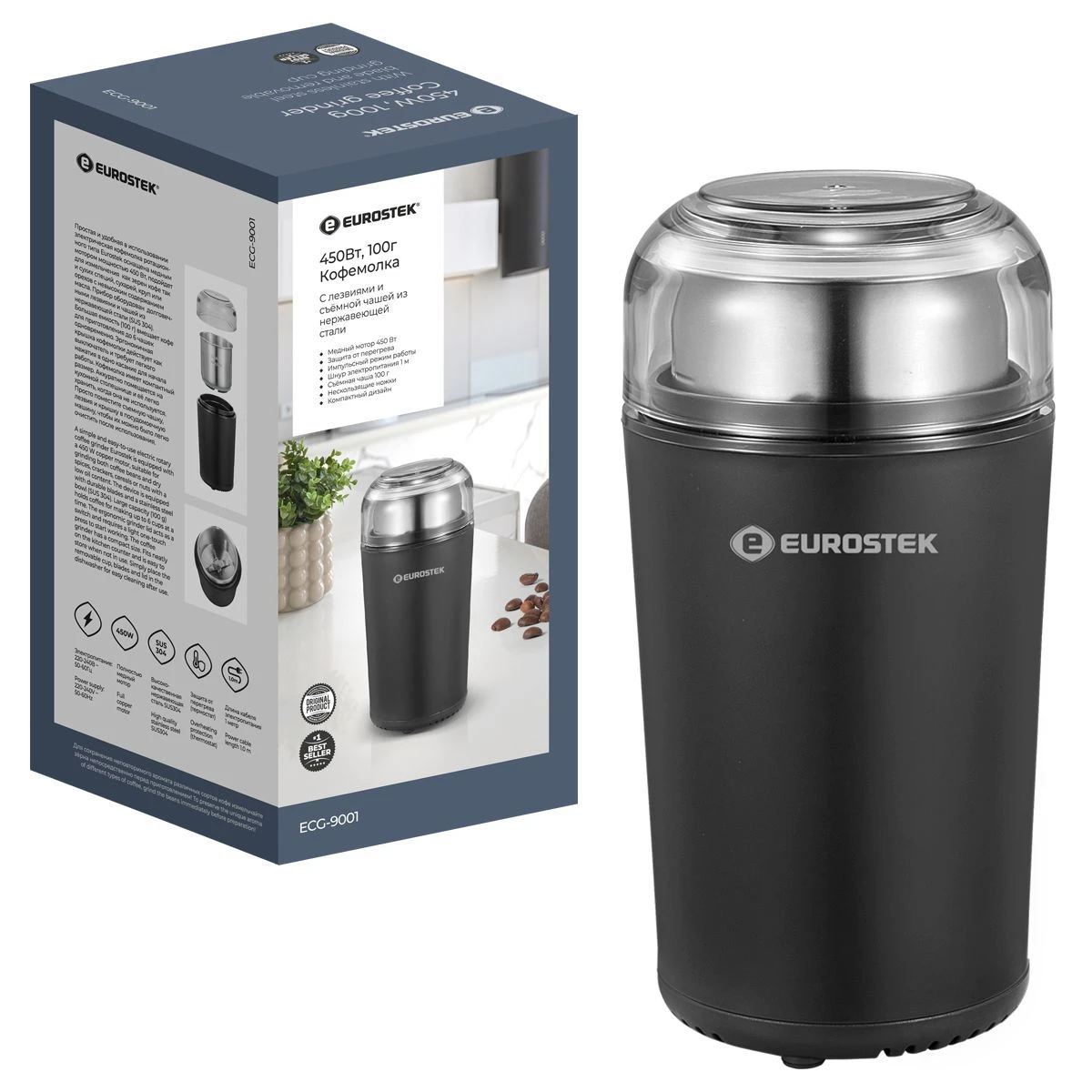 Кофемолка ECG-9001 проста и удобна в использовании.