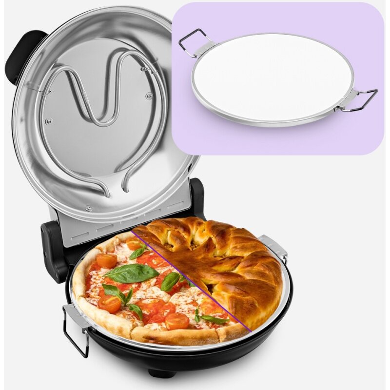 Пиццамейкер КТ-4643 – универсальное устройство, способное заменить духовку. Идеально подходит для приготовления пиццы, различных пирогов, сырников, горячих бутербродов, а также запечь овощи или мясо. Прибор максимально разогревается до 360–400 градусов.