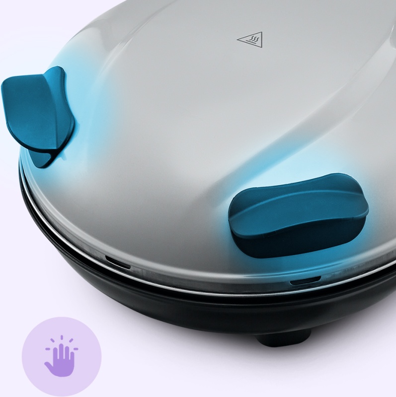 Одна из главных особенностей пиццамейкера – два нагревателя с шестью температурными режимами (максимальная температура 405 градусов), которые контролируются с помощью отдельного регулятора. Второй регулятор отвечает за таймер до 15 минут.