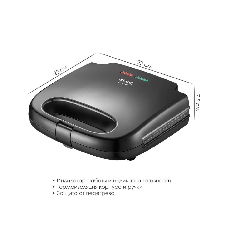 Высокая мощность прибора позволяет в кратчайший срок набрать рабочую температуру и приступить к работе. О готовности сэндвичницы к работе Вы можете судить по специальному индикатору готовности.Антипригарное покрытие